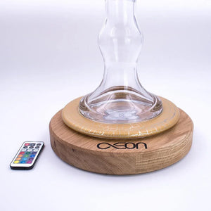 AEON x Shisha Board Untersetzer für deine Shisha. AEON Shisha Bowls passen perfekt auf den Untersetzer. Der Untersetzer ist aus Eiche und hat in der Mitte eine kleine Vertiefung für eine LED. Die LED ist im Lieferumfang enthalten, ebenso wie eine kleine Fernbedienung, um die Farben der LED zu steuern. Batterien sind nicht enthalten.