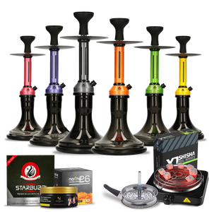 This shisha comes ready to use with all essential accessories: a silicone hose with handle, a spring to prevent kinks, a charcoal tong, and a Kaloud-compatible silicone phunnel bowl. This bowl is perfectly adapted for Kaloud, ARC V3, and One Smoke heat management systems, optimizing heat distribution and flavour. The phunnel design prevents molasses from dripping, while the silicone ensures durability, easy cleaning, and heat resistance.