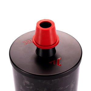 Sowohl die Wasserpfeife als auch das Mundstück bestehen aus V2A Edelstahl welcher matt PVD beschichtet wurde, sowie echtem Forged Carbon. Einzelne Akzente der Wasserpfeife wurden in NOVITEC Rot beschichtet.